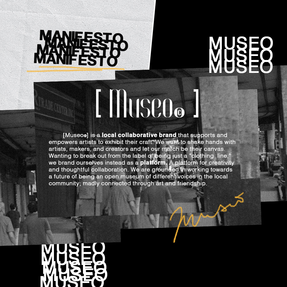 [Museo] is a local collaborative brand that supports and empowers artists to exhibit their craft. We want to shake hands with artists, makers, and creators and let our merch be their canvas. Wanting to break out from the label of being just a “clothing line,” we brand ourselves instead as a platform. A platform for creativity and thoughtful collaboration. We are grounded in working towards a future of being an open museum of different voices in the local community; madly connected through art and friendship. EST. 2019